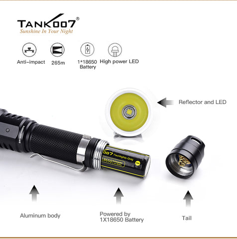 Battery: One included 16340 rechargeable li-ion battery or one CR123A lithium battery