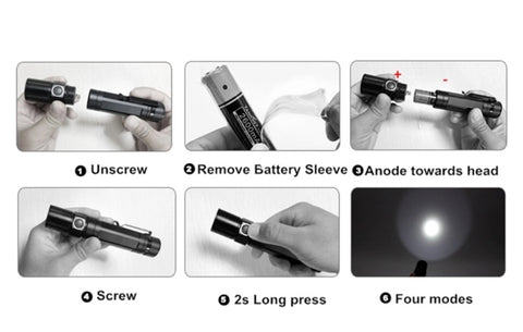 Battery: One included 16340 rechargeable li-ion battery or one CR123A lithium battery